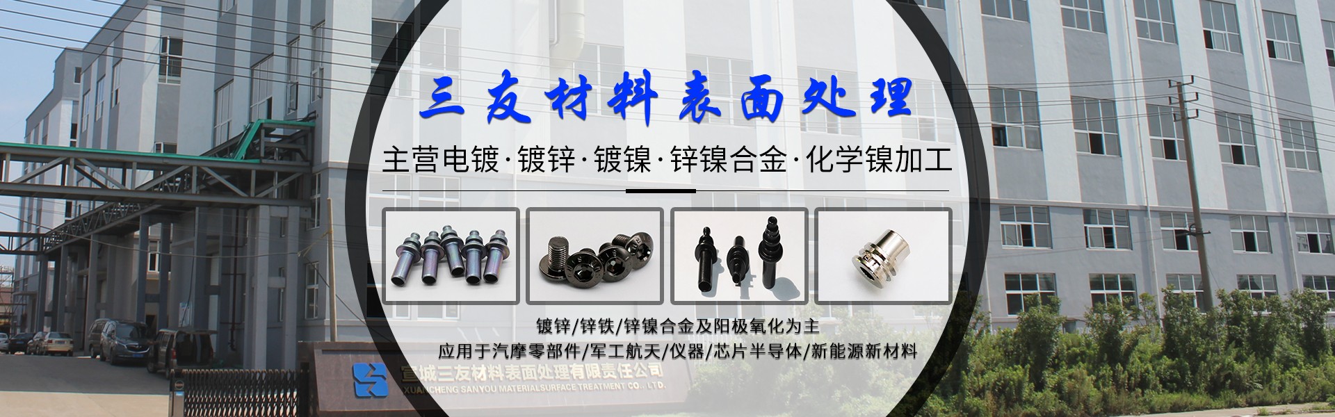 宣城三友材料表面處理有限責任公司成立于2012年,其前身宣城精誠材料表面處理是一家有著十多年歷史的專業電鍍氧化表面處理企業。 我公司坐落于安徽宣城高新技術產業開發區位置,毗鄰滬蘇浙,東接宣州港、南臨宣南銅高速宣城北入口,北距蕪宣機場3公里。 公司產品以鍍鋅及鋅鐵和鋅鎳合金及陽極氧化為主,立足服務于汽摩零部件,軍工航天,儀器,芯片半導體,新能源新材料,衛浴箱包等行業用戶。...